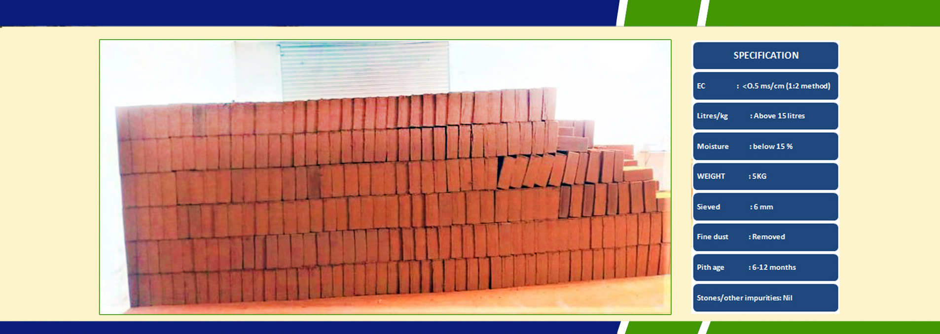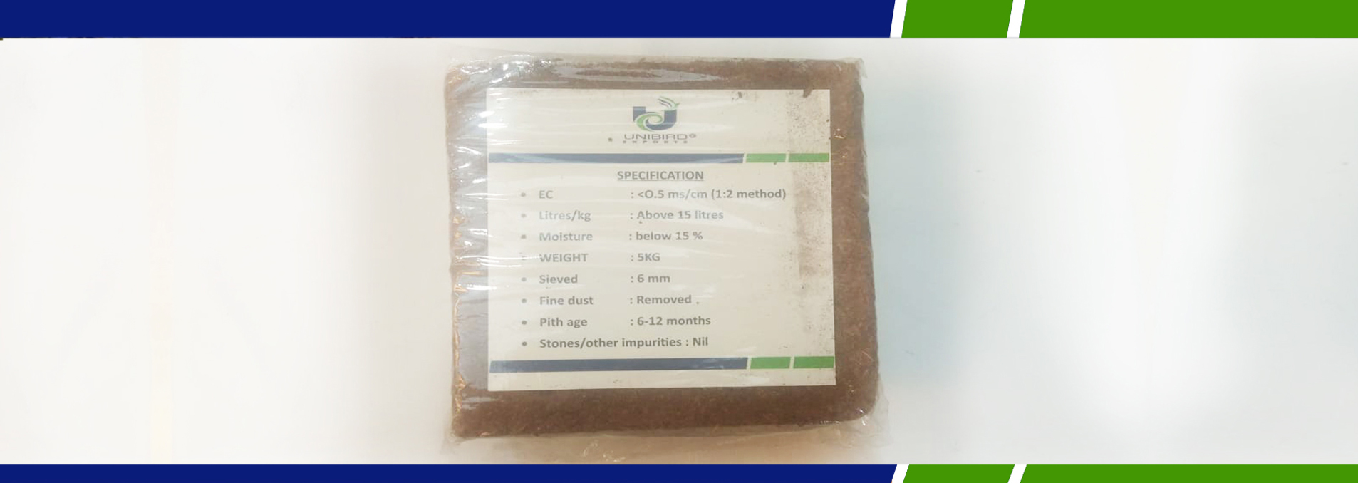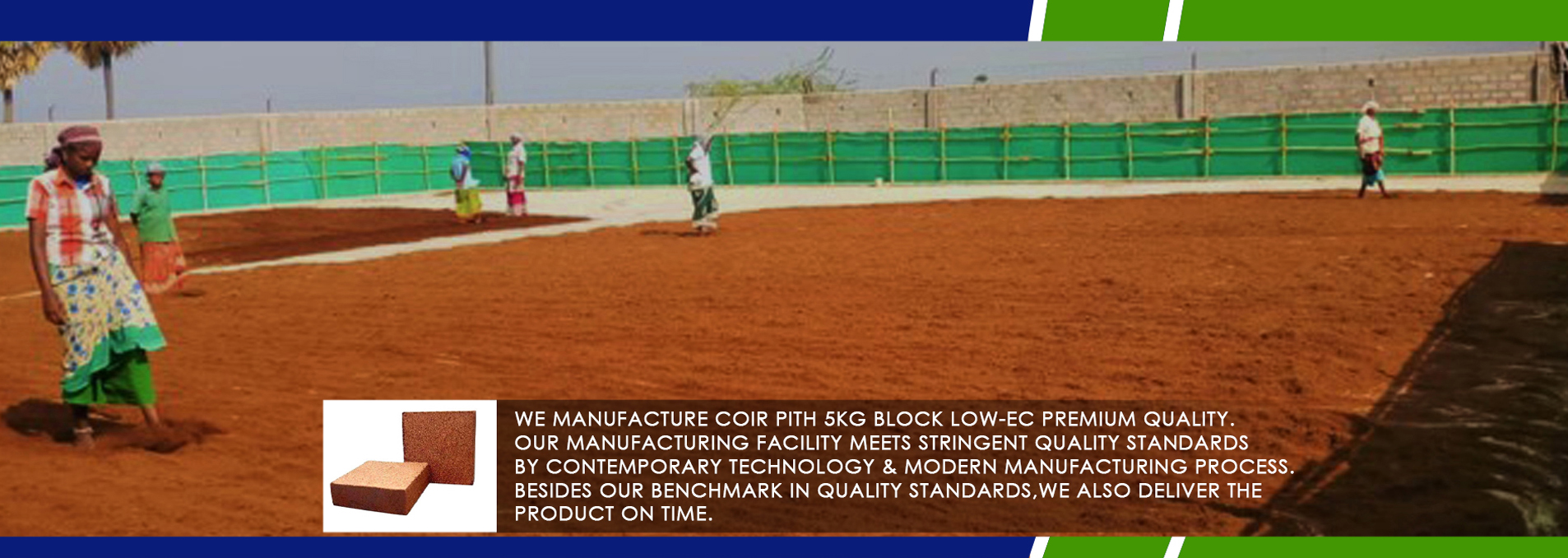 WE MANUFACTURE COIR PITH 5KG BLOCK LOW-EC PREMIUM QUALITY.OUR MANUFACTURING FACILITY MEETS STRINGENT QUALITY STANDARDS BY CONTEMPORARY TECHNOLOGY & MODERN MANUFACTURING PROCESS.BESIDES OUR BENCHMARK IN QUALITY STANDARDS,WE ALSO DELIVER THE PRODUCT ON TIME.
